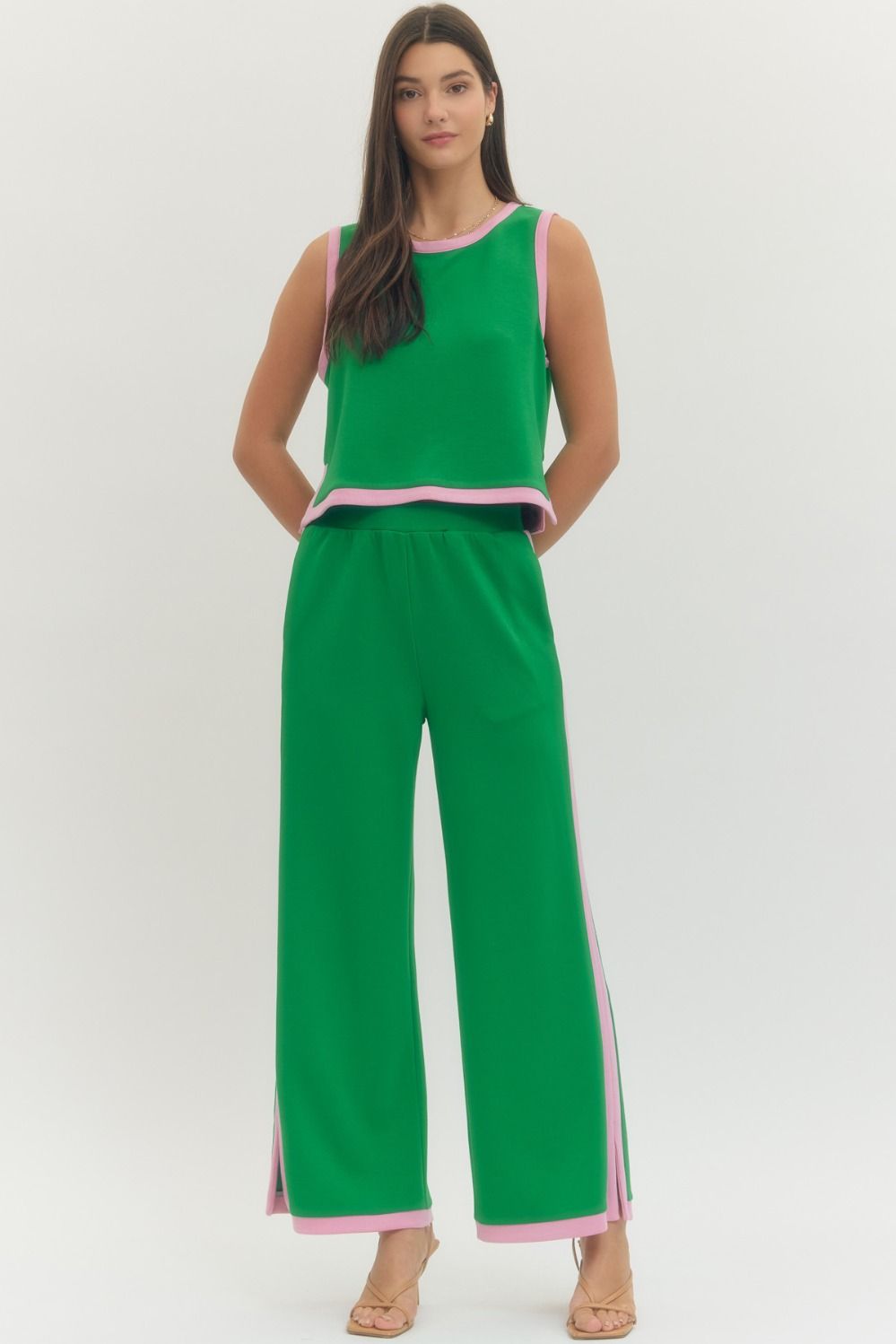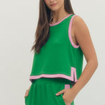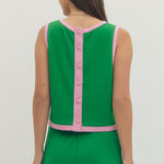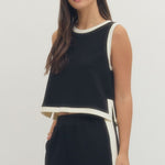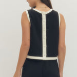 Elevate your everyday wardrobe with this charming sleeveless knit top that's equal parts versatile and fun. Crafted from lightweight knit fabric, it features a flattering silhouette with a clever back button closure that adds an unexpected twist to your look. The contrast binding frames the neckline beautifully, while practical side slits keep things comfortable and stylish. Non-sheer and unlined, this piece works perfectly layered over a tee or worn solo for those warmer days. Whether you're dressing it up with tailored trousers or keeping it casual with your favorite jeans, this top brings an effortless sophistication to any outfit.