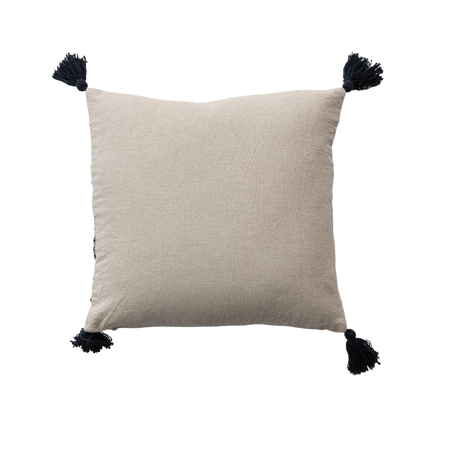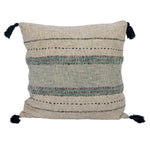 The 18-inch Square Cotton and Linen Blend Pillow has hand-embroidered stripes, chambray back, and tassels that create a unique and stylish look that complements a variety of interior styles. The combination of cotton, polyester, and linen blend materials ensures durability and a soft touch. Its 18-inch square size makes it perfect for layering with other pillows or as a standalone statement piece on the sofa or bed. This product is made of cotton, polyester, and linen blend with down filler. This pillow measures 18 inches in length and 18 inches in width. The 18-inch Square Cotton and Linen Blend Pillow has hand-embroidered stripes, chambray back, and tassels that create a unique and stylish look that complements a variety of interior styles. The combination of cotton, polyester, and linen blend materials ensures durability and a soft touch. Its 18-inch square size makes it perfect for layering with other pillows or as a standalone statement piece on the sofa or bed. This product is made of cotton, polyester, and linen blend with down filler.