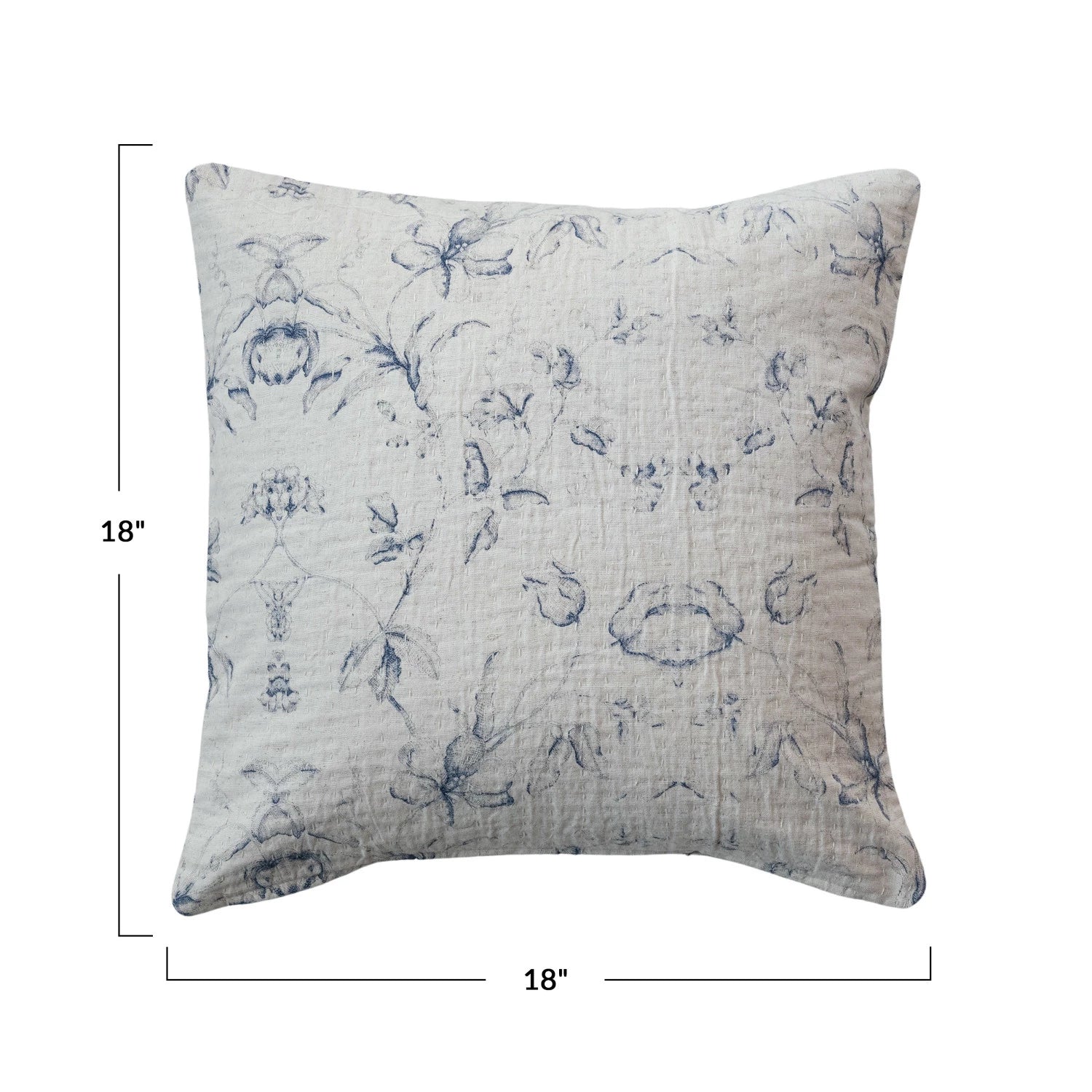 Square Cotton & Linen Printed Pillow (Each One Will Vary)