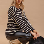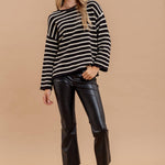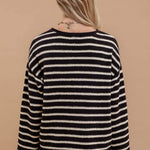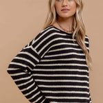 BOAT NECKLINE LONG SLEEVES DROP SHOULDER RAW EDGE STRIPE PATTERN KNIT PULLOVER SWEATER SWEATSHIRT 75% ACRYLIC, 25% POLYESTER