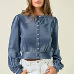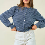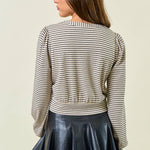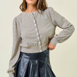 Striped Knit Button Front Blouse