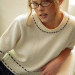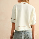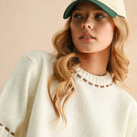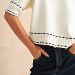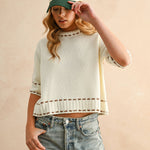 STITCH EFFECT DETAIL SHORT SLEEVE TOP * * Size & Fit * * Model rocks a size S Measurements from size S Height – 5'7 1/2" (175.3 cm)