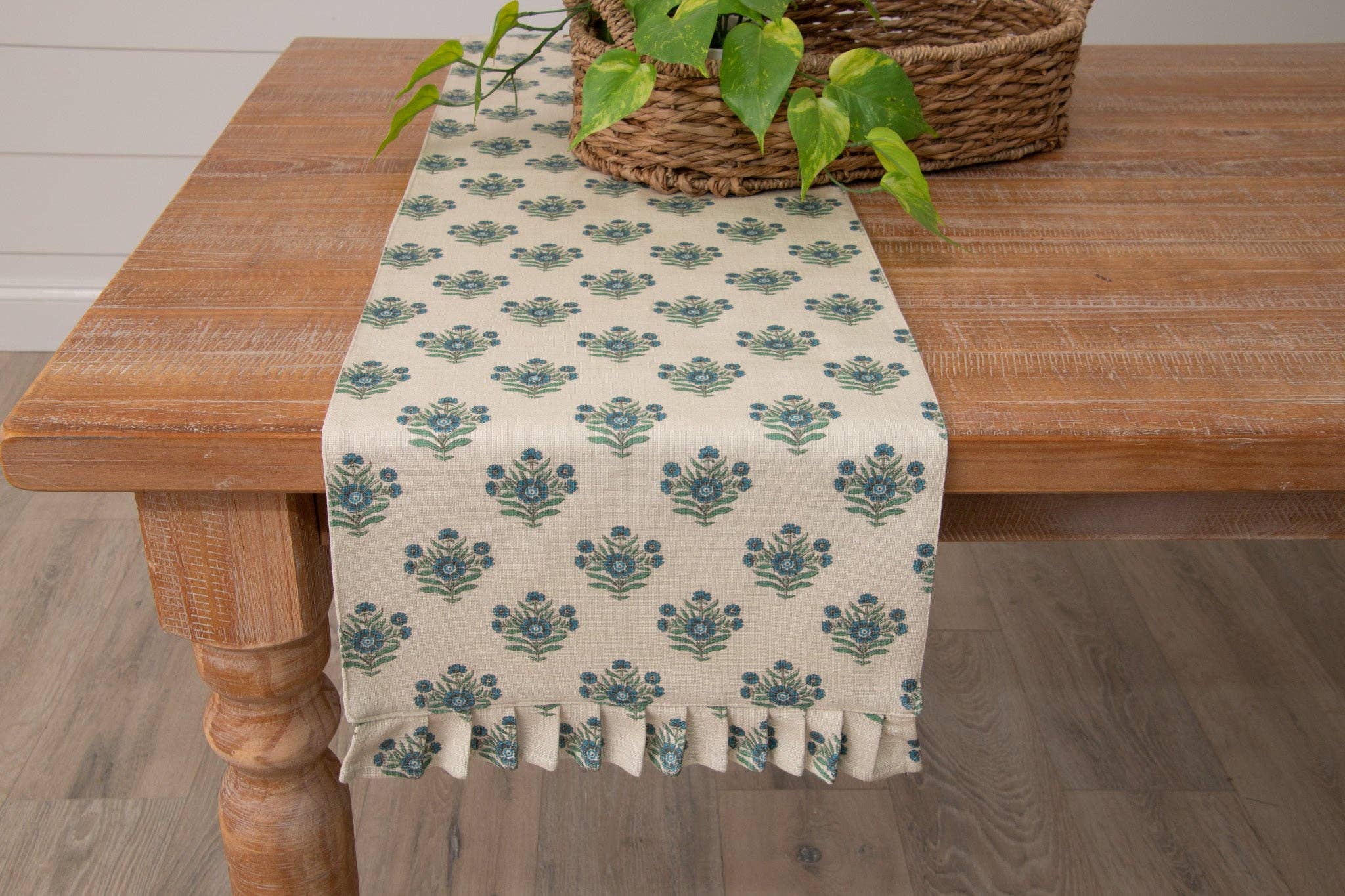 Blue Block Print Silhouette Table Runner
