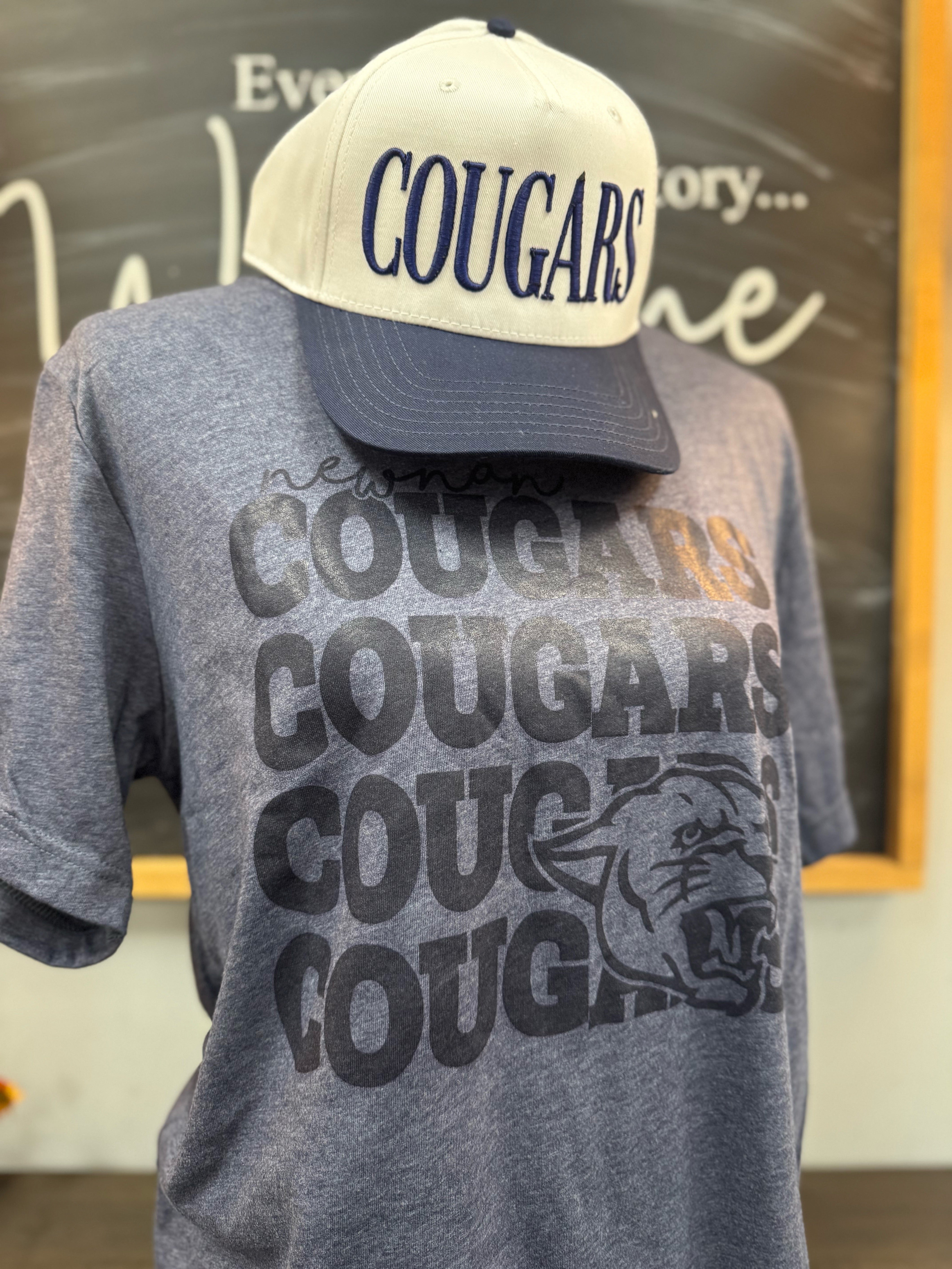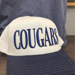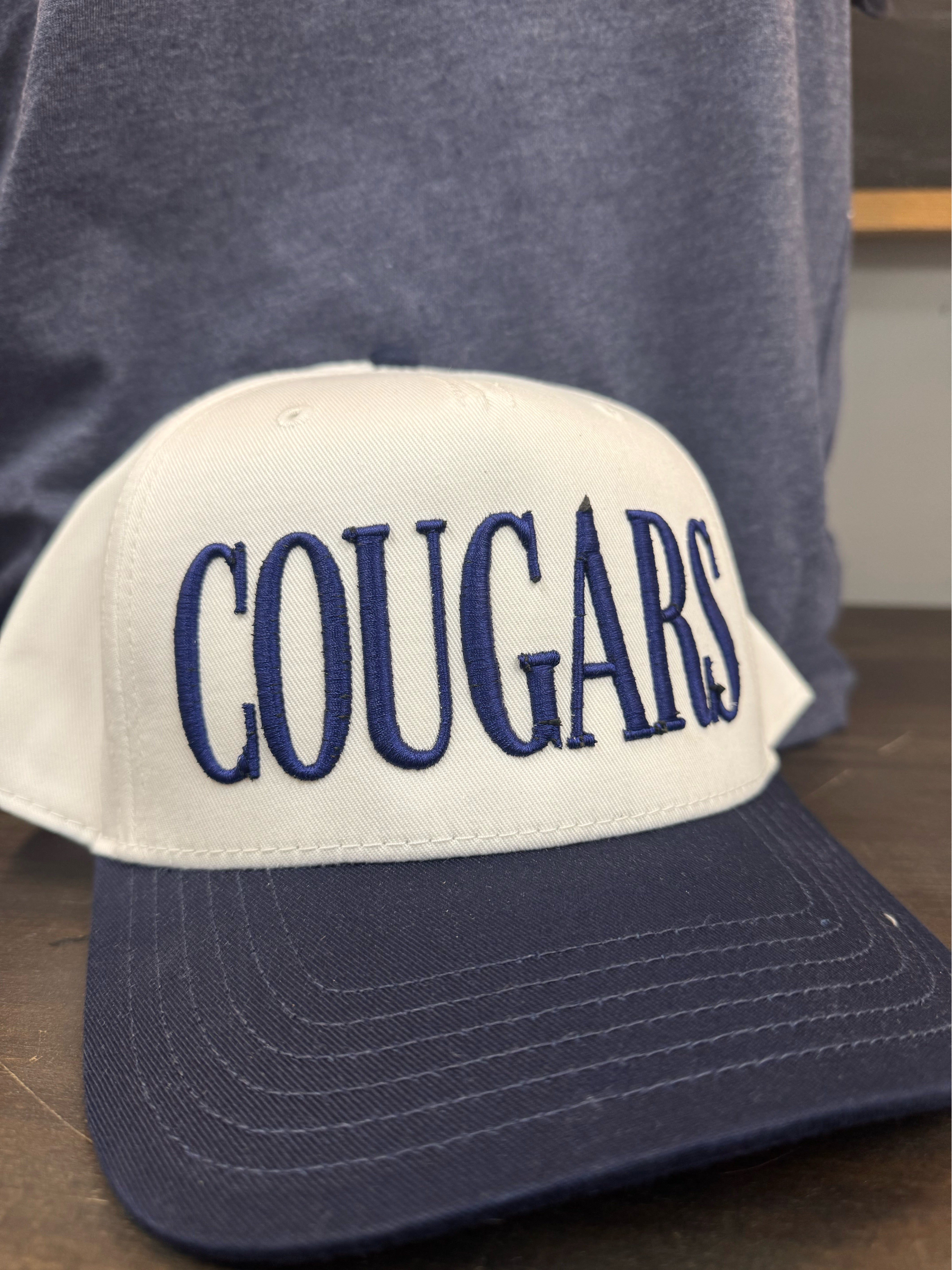 "Join the Cougar crew with our navy embroidered trucker hat! This hat combines comfort and style with cream detailing and a timeless design. Perfect for any adventure, stand out from the pack with this unique accessory. (Roar!) "