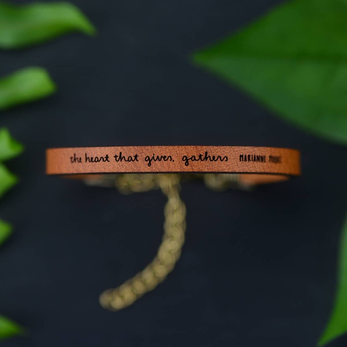 The Heart That Gives, Gathers (Marianne Moore)- Brown Leather Bracelet