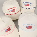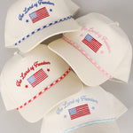 USA Flag & The Land of Freedom Embroidery - 5 Panel Trucker Hat with Color Lining - 100% Cotton - Relaxed Fit and Pre-Curved Visor