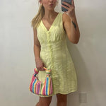 Textured Mini Dress Elevate your everyday look with this playful textured mini dress that's equal parts fun and fabulous. The dimensional fabric adds visual interest and movement, while the mini silhouette keeps things flirty and fresh. Perfect for casual outings, weekend adventures, or whenever you want to feel effortlessly put-together. Pair it with sneakers for a laid-back vibe or dress it up with heels for an instant style upgrade. A versatile wardrobe essential that brings personality to any occasion.