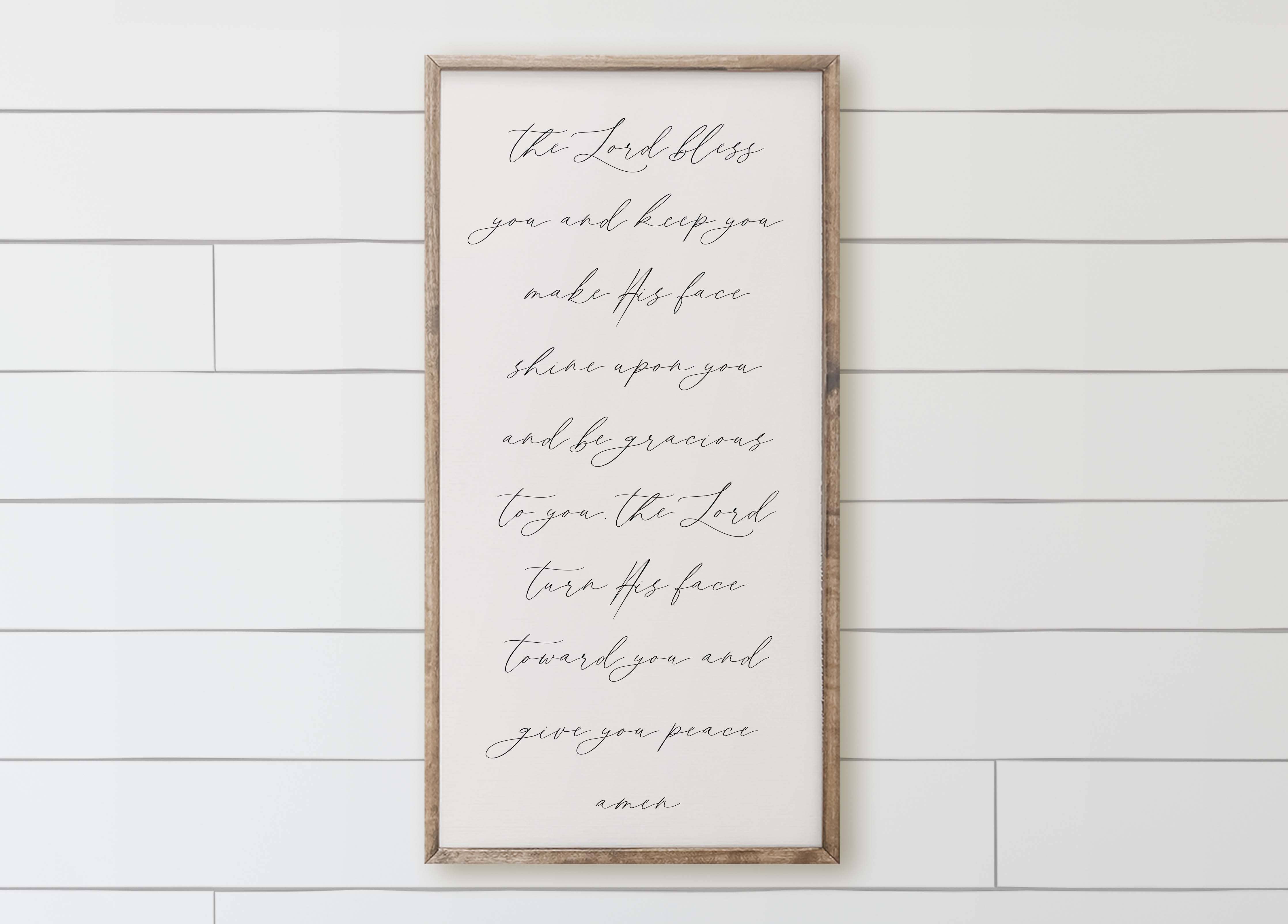 Our wood framed signs are designed and made in our Pennsylvania studio. Our artistic take on this classic design is printed on a beautifully embossed canvas board using the highest quality technique. We offer a variety of designs, sizes and stain colors, made to your liking! HOW IT'S MADE - Hand-crafted wood frame allows for beautiful, natural tones and variations. - All of our products are made with eco-friendly inks and stains - Our designs are printed directly onto the product, therefore there is no textured vinyl that will peel or crack DETAILS - Elements of the wood frame may show in the finished product, such as knots and grains - Outer frame profile 3/4 x 3/4" - Clean and elegant chipboard mat backing - Hanging hardware included but not installed Feel free to reach out to us with any questions!