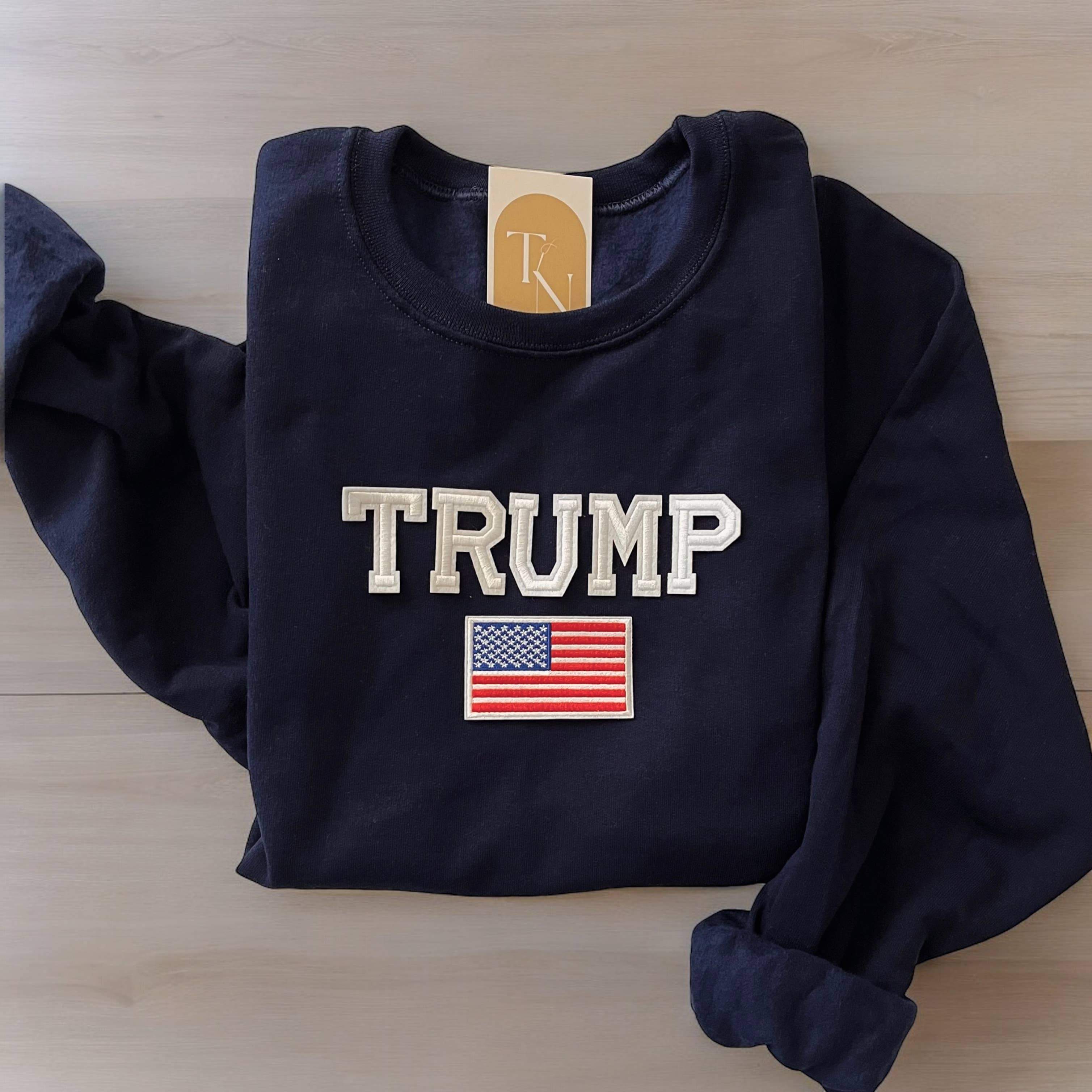 This cozy and unique Sweatshirt makes the perfect gift for Trump Supporters! This makes a perfect patriotic sweatshirt all year round as well! - These patches have been ironed on and heat pressed, not embroidered. But reassured they won't come off even after wash! - Material: 50% Cotton, 50% Polyester - Our sweatshirt material is super soft and comfy! - All our sweatshirts run a unisex fit. They are naturally oversized, so we normally recommend your true size. But if you like a more baggy look, we recommend sizing up.