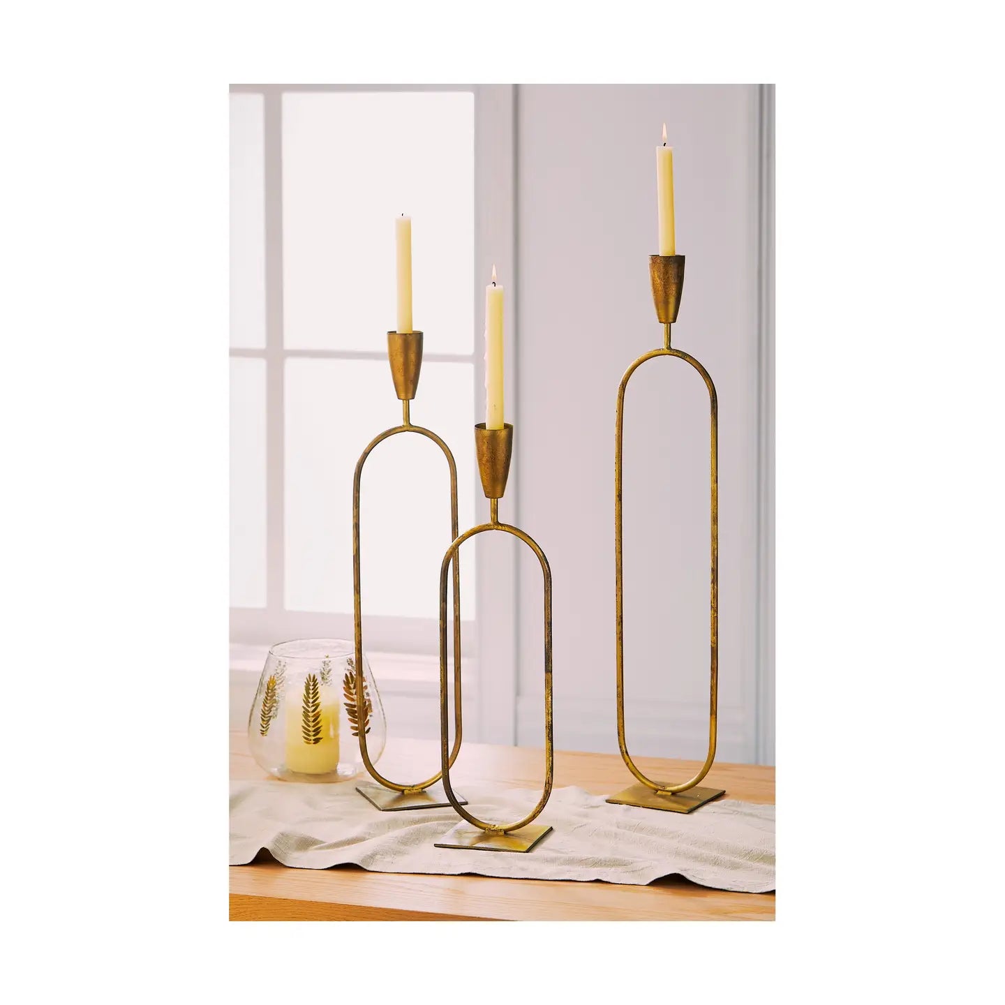 Kick up the glam. this statement, artisan-made taper candle holder features iron construction and handcrafted detail. pair with other maestoso taper holder sizes. bring deco style to any room! holds standard size straight or taper candle, sold separately.