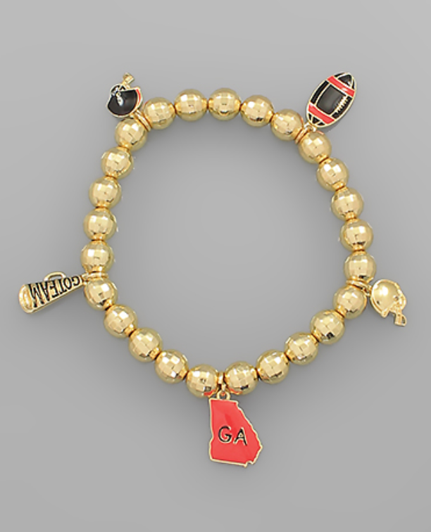 Show your Bulldog pride with this playful UGA Charm Bracelet. Its stretchy design ensures a comfy fit for any wrist, while fun Georgia-themed charms add spirit to every move you make. Perfect for game days or everyday wear, this bracelet keeps the Bulldog spirit close and your style on point.