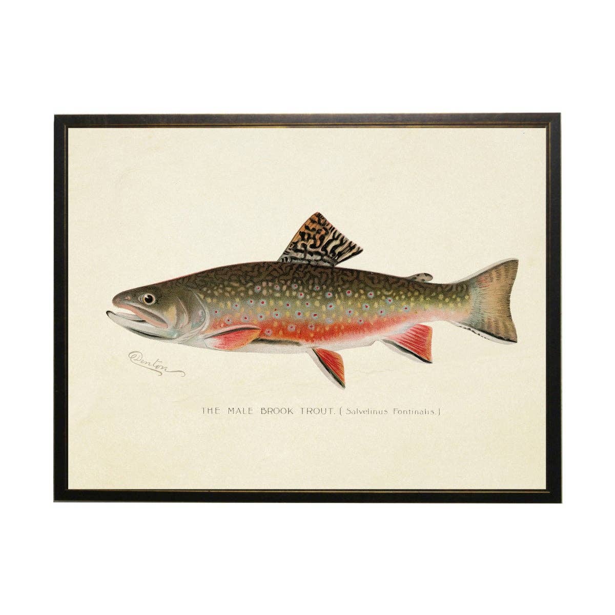 Vintage Male Brook Trout Bookplate Framed Artwork