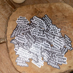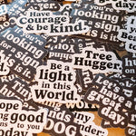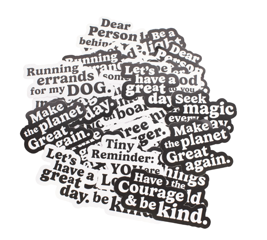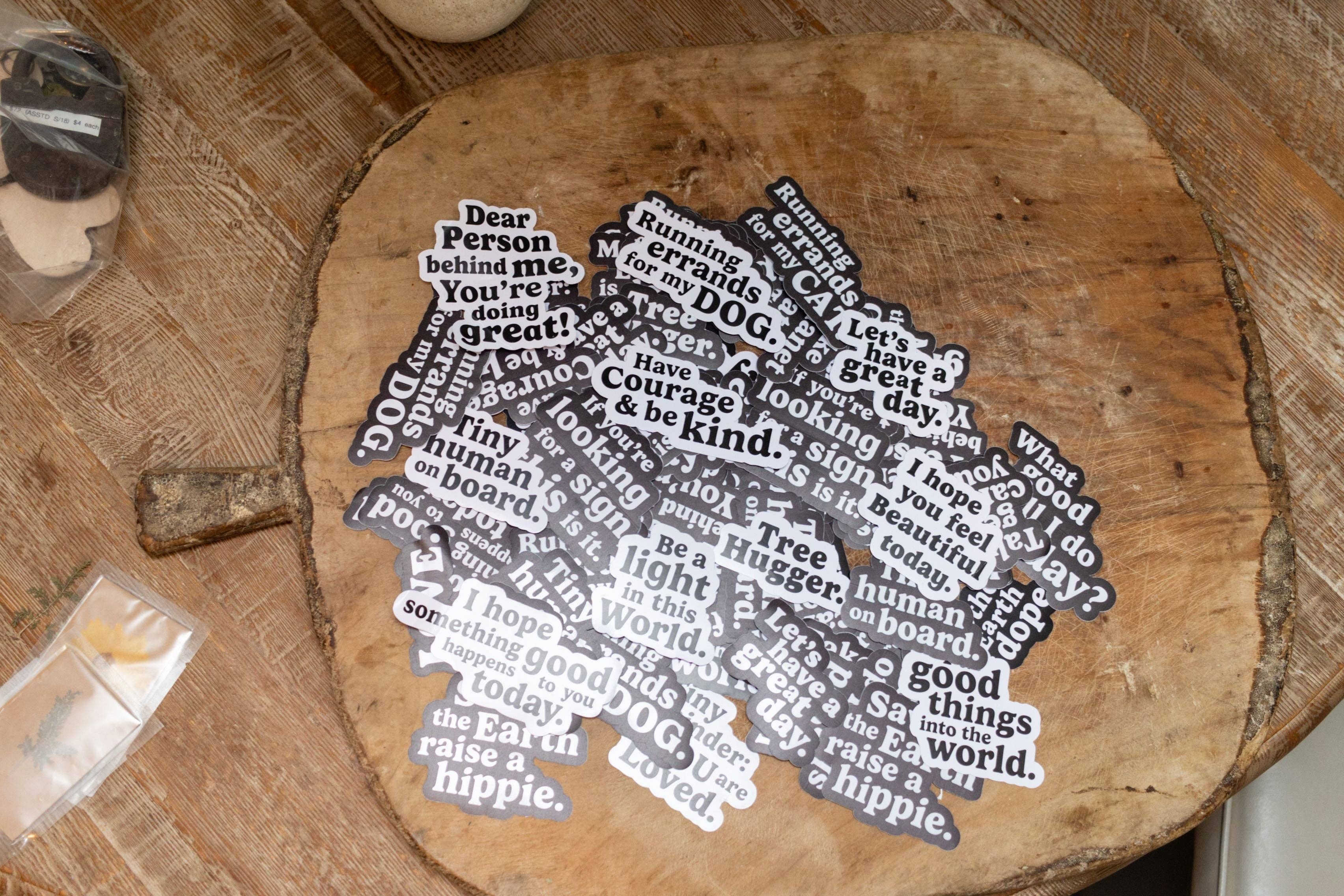 1. Let's have a great day. 2. Save the Earth raise a hippie. 3. LOVE. 4. Dear person behind me, You're doing great! 5. Be the reason someone smiles today. 6. Make the planet great again. 7. Tiny reminder: You are loved. 8. Kindness Matters 9. I brake for turtles 10. Tiny human on board. 11. Tell your dog I said hi. 12. Tree Hugger. 13. I hope something good happens to you today. 14. Be a light in this world. 15. Mother Earth is dope. 16. Take gentle care of yourself. 17. Seek magic every day. 18. I hope you feel beautiful today. 19. Running errands for my dog. 20. Have courage & be kind. 21. Tell your cat I said hi. 22. Put good things into the world. 23. If you are looking for a sign, this is it. 24. What good shall I do this day? 25. Running errands for my cat.