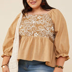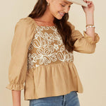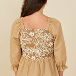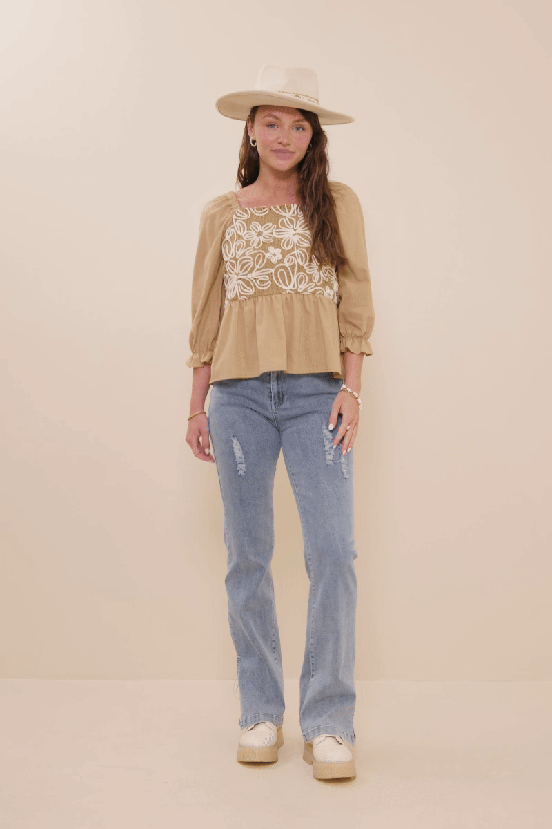 Floral embroidered details and a charming peplum silhouette make this cotton top a wardrobe favorite. The square neckline adds a modern touch, while the soft 100% cotton fabric keeps you comfortable all day. Hand wash cold and hang dry to maintain its beautiful embroidery.