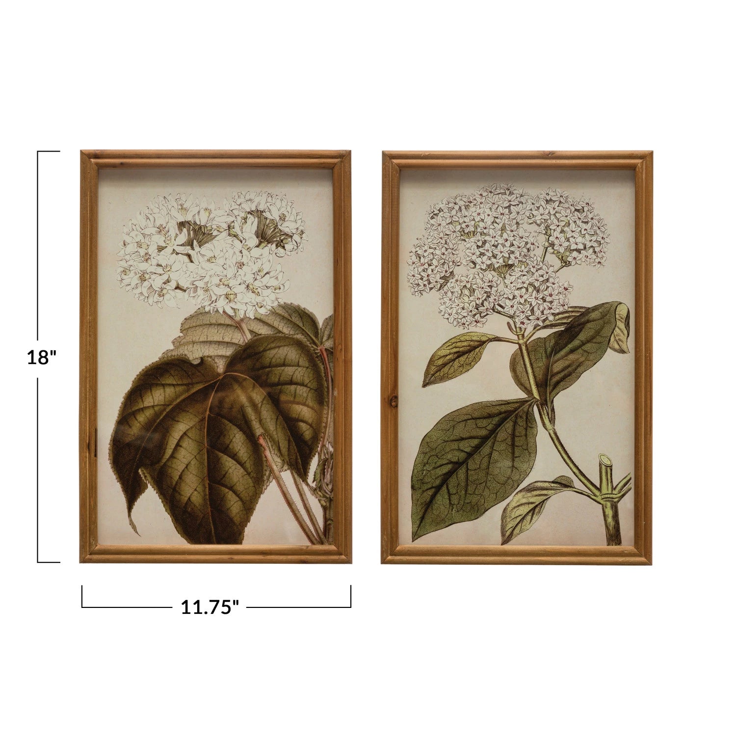 Wood Framed Glass Wall Décor w/ Flowers, White & Green, 2 Styles