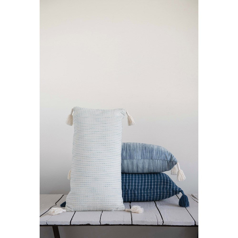 24"L x 12"H Woven Cotton Lumbar Pillow w/ Tassels, 3 Styles