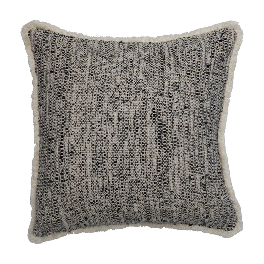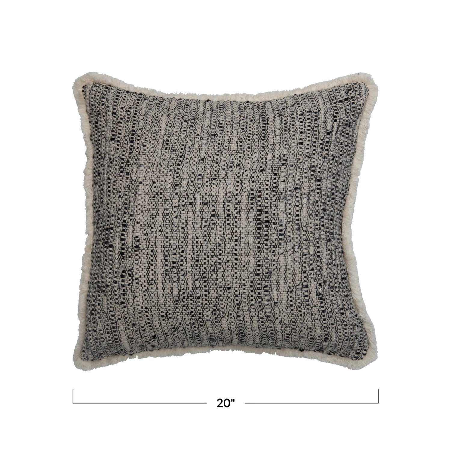 20" Woven Cotton Pillow w/ Chambray Back & Eyelash Fringe, Down Fill